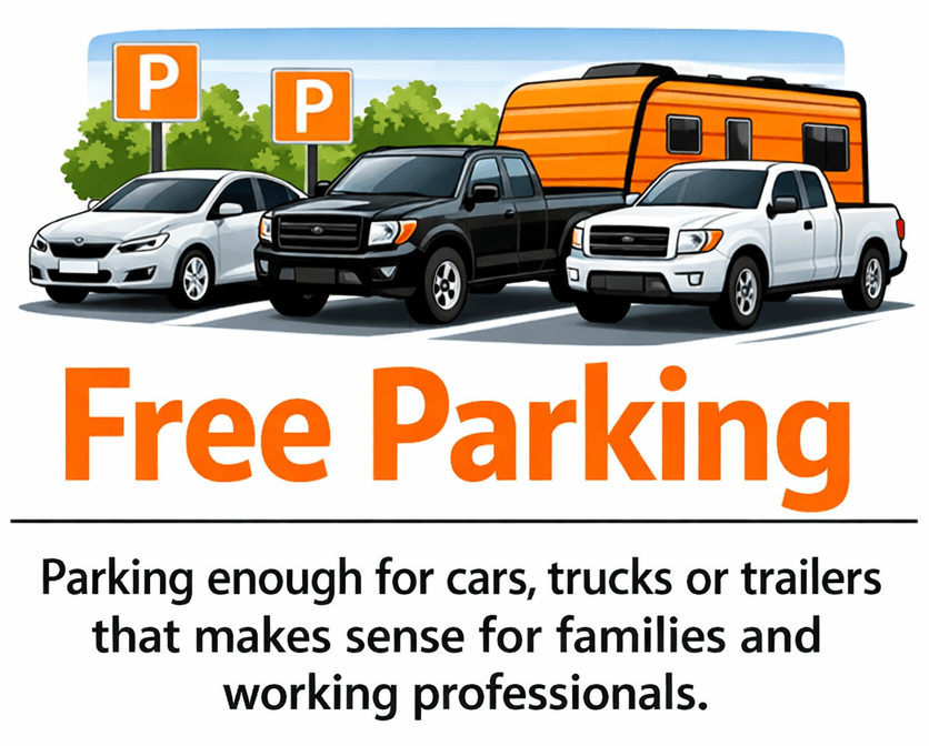 Practical parking for cars, trucks & trailer